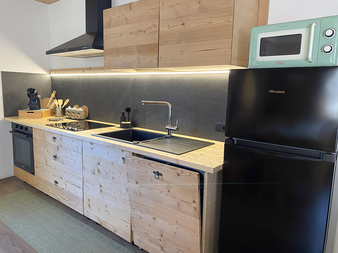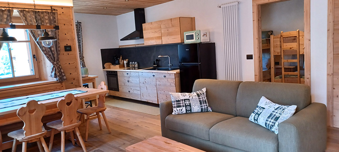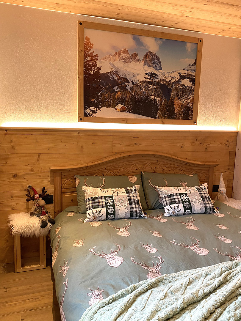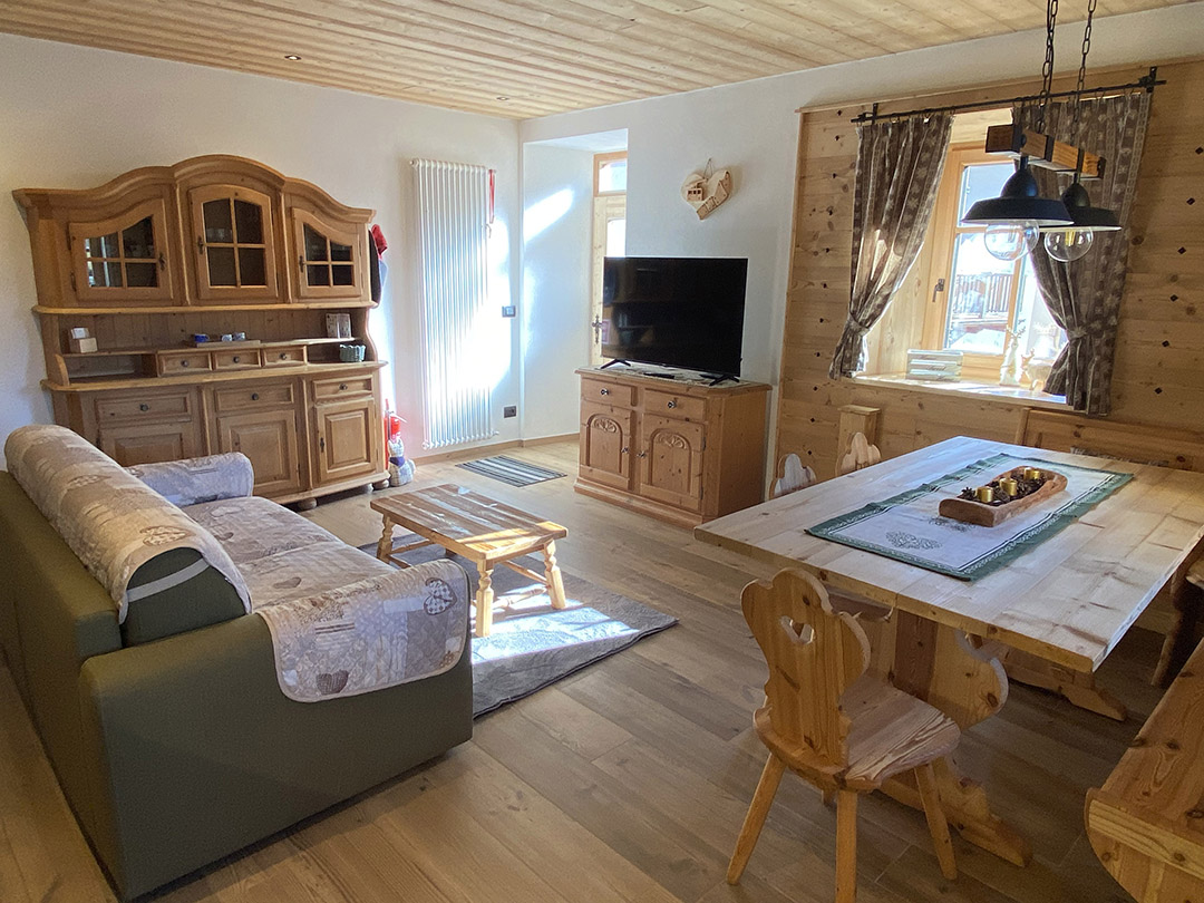 This beautiful apartment, with a distinctly mountain chic style, is brand new... with its two bedrooms, a brand new and comfortable sofa bed, and two bathrooms, it can accommodate up to eight people. Warm, elegant, and welcoming, it is equipped with every comfort, including a private parking space and a spacious ski and bike storage room. It is located in the historic center of the small hamlet of Masi di Cavalese and is very close to all the amenities the town has to offer. Nearby is a playground, a large green area, and a bike path... and less than a two-minute drive away is the Alpe Cermis ski lift!