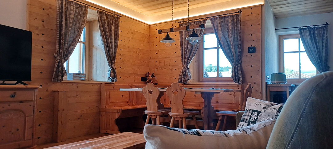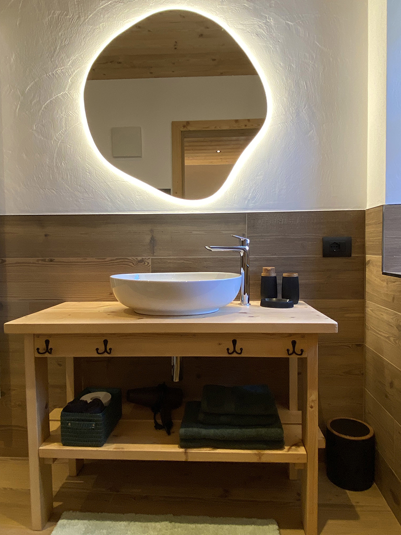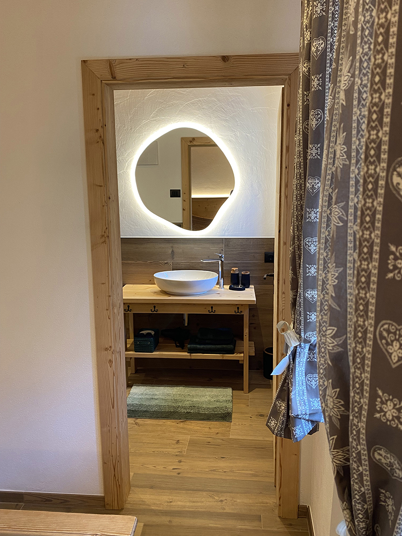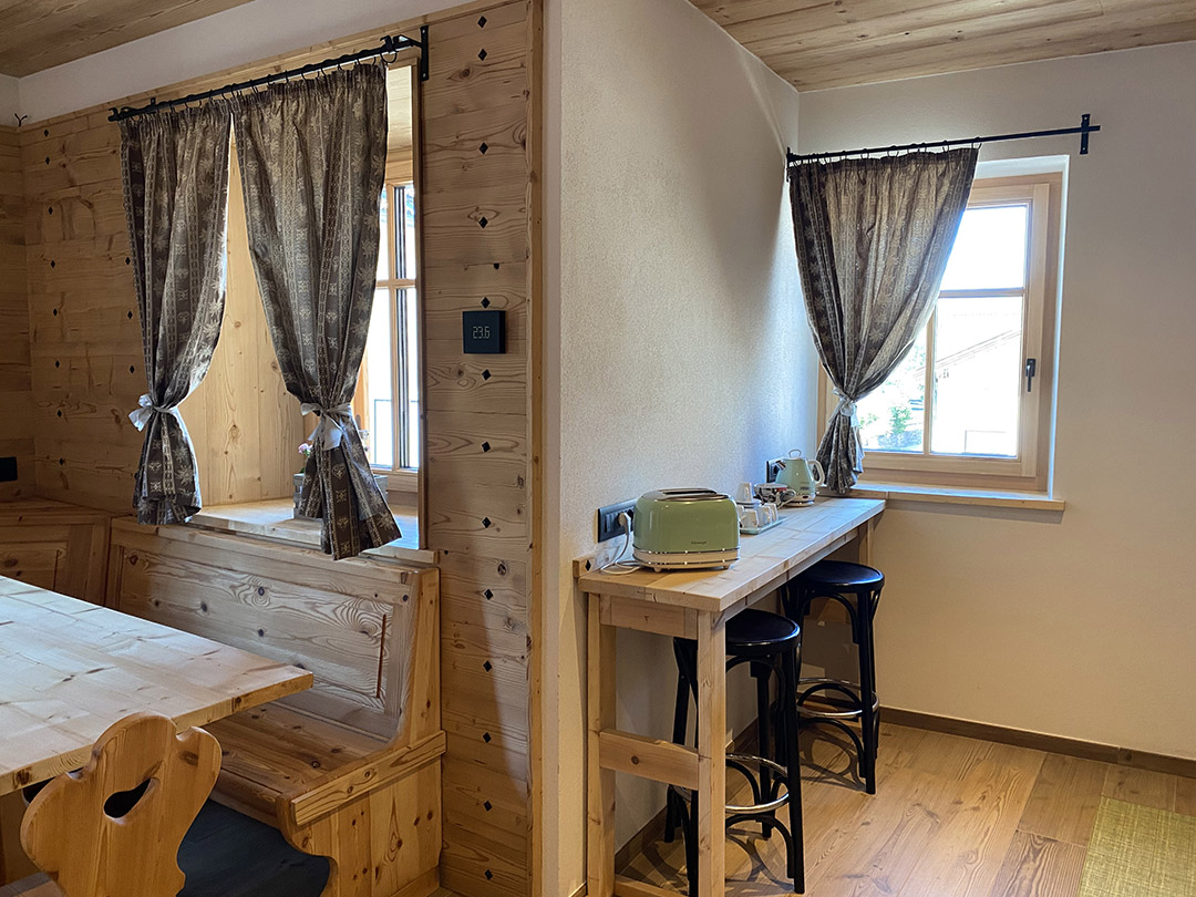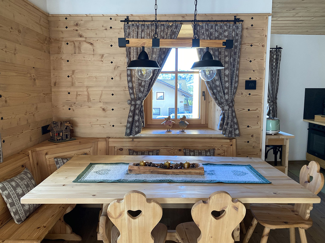 This beautiful apartment, with a distinctly mountain chic style, is brand new... with its two bedrooms, a brand new and comfortable sofa bed, and two bathrooms, it can accommodate up to eight people. Warm, elegant, and welcoming, it is equipped with every comfort, including a private parking space and a spacious ski and bike storage room. It is located in the historic center of the small hamlet of Masi di Cavalese and is very close to all the amenities the town has to offer. Nearby is a playground, a large green area, and a bike path... and less than a two-minute drive away is the Alpe Cermis ski lift!